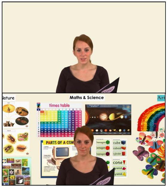 The children were presented with a video lesson where a teacher stood in front of a screen that was either decorated with a display taken from an actual classroom, or a blank screen (see below). The children were then assessed using a worksheet and eye-tracking equipment was employed to detect where the children were looking.