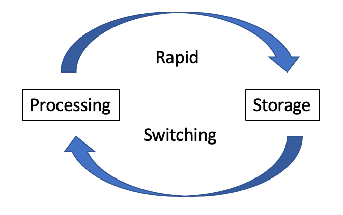 Barrouillet proposes that when people carry out a task, the cognitive system rapidly switches between processing the information and storing it, so our focus of attention continually flips between carrying out the task and refreshing the memory trace. Storage and processing can’t take place at the same time and this results in a bottleneck where both functions are forced to compete for resources.