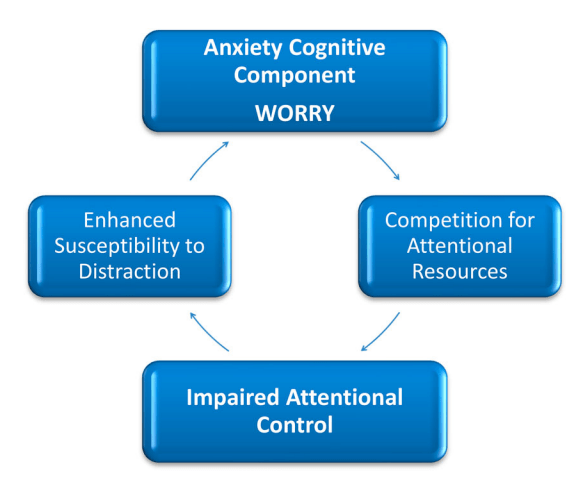 Attentional Control Theory (ACT) developed by Michael Eysenck, a psychologist at Royal Holloway, University of London, proposes that anxiety acts as a distracter that depletes the cognitive capacity needed for solving complex problems (Eysenck et al., 2007). ACT emphasises the impact of anxiety on executive function (e.g. working memory, emotion regulation, and cognitive flexibility), leading to an increased focus on threat-related stimuli. While the body is in a heightened state of vigilance (fight or flight), higher mental functions take a back a seat, impairing attentional processes and working memory.